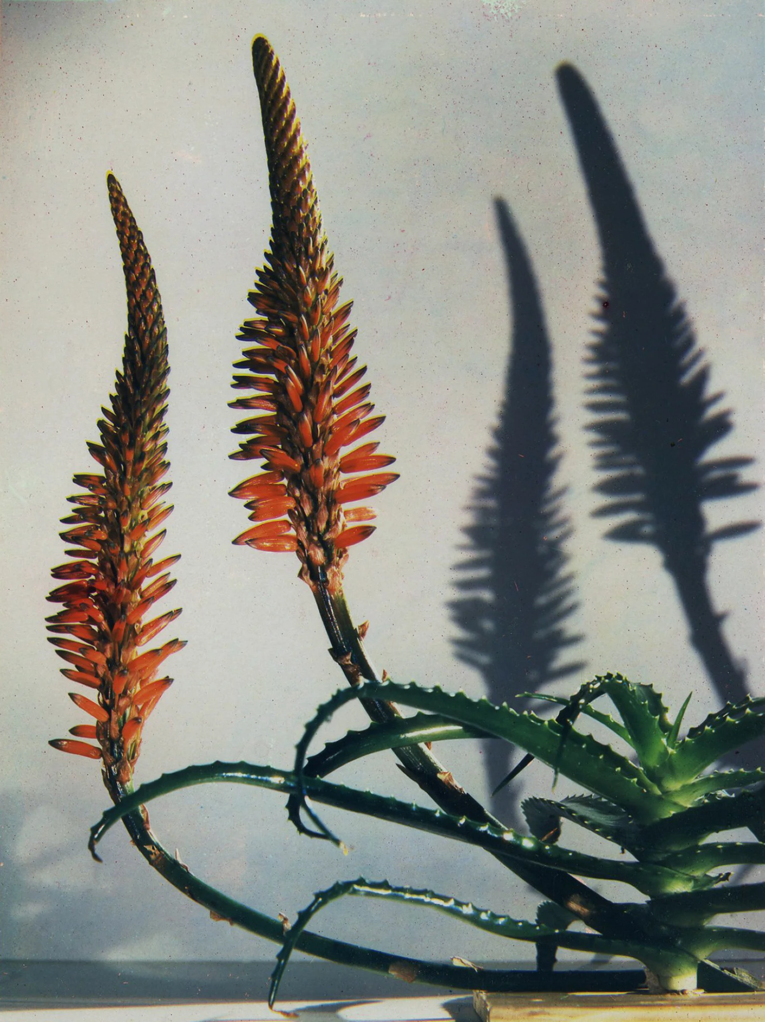 This close study of an aloe plant appears to be an early experiment in color. The small scale, shallow depth of field and custom dye-transfer process suggest that the photo was a personal effort.
