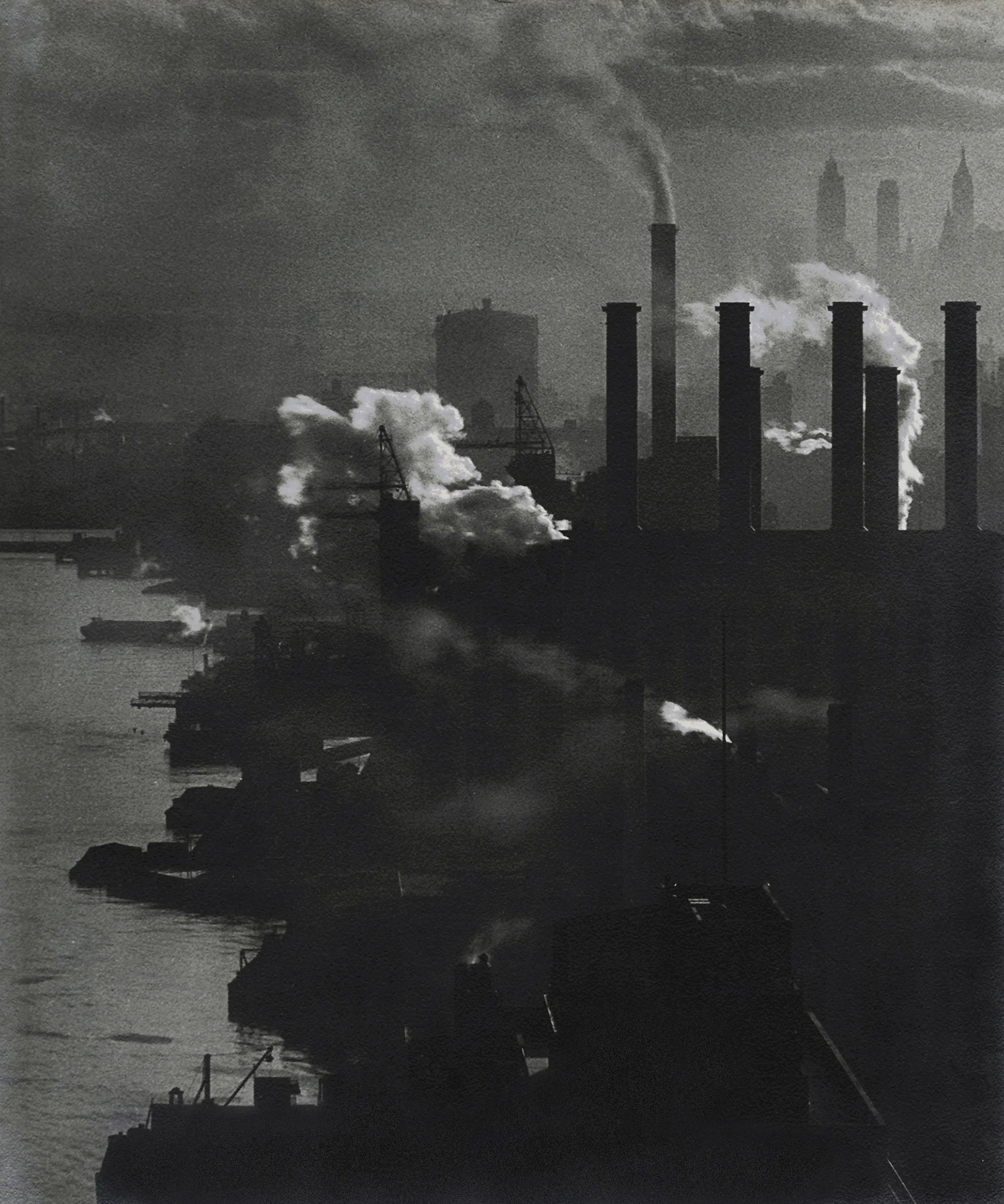 This view of Manhattan’s East River skyline is another great photograph by Samuel Gottscho. This particular print was a personal gift from Gottscho to Dorothy C. Miller, the first curator of photography at the newly founded Museum of Modern Art with the inscription: “I have never ceased to wonder at the marvel of photography as it freezes a split-second for eternity, the glorification of industry.”